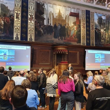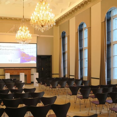 Københavns Universitet holder Nytårstaffel med Kahoot! i den skønne festsal! 🥳🥂 Rektor taler i svanehalsmikrofon og Universitetsdirektøren i headset - begge giver fantastisk lyd 🎶😌