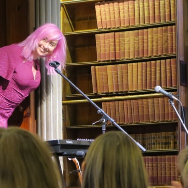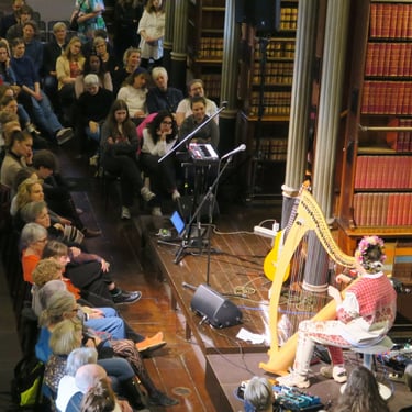 Vi mærkerede Kvindernes Internationale Kampdag og 150-året for kvinders adgang til Københavns Universitet✊❤️ Det foregik i det smukke Universitetsbibliotek arrangeret af Nana Jacobi fra Hun Solo og Anders Holbæk fra Det Kgl. Bibliotek 📚✨ Det blev en meget smuk audiovisuel markering med præcise og veludførte musikalske indslag fra Hilal Kaya, Sylfide og Nana Jacobi - avaid stod for lyd, lys og billeder 🎶👌